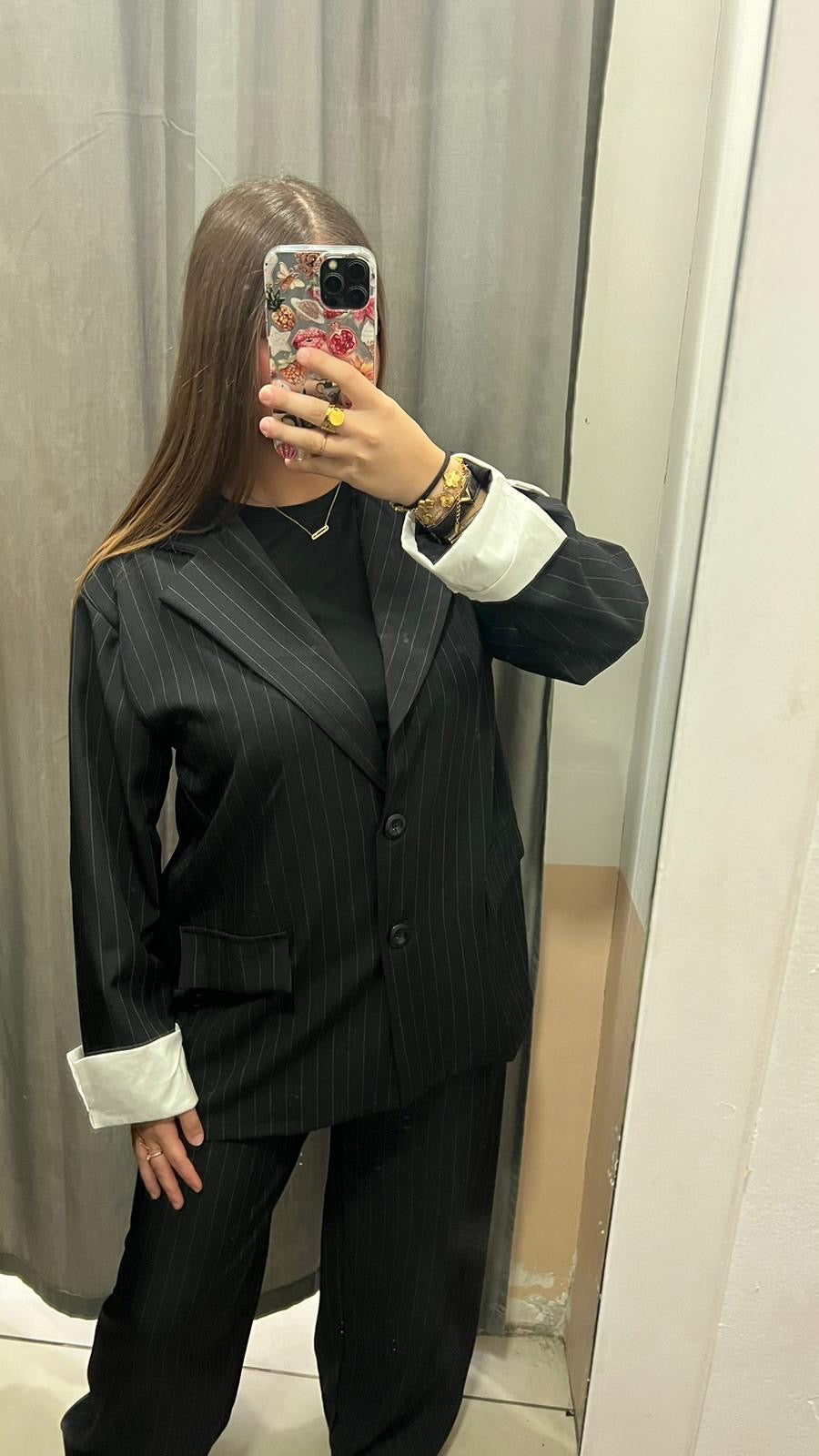 Ensemble Blazer Rayé Noir